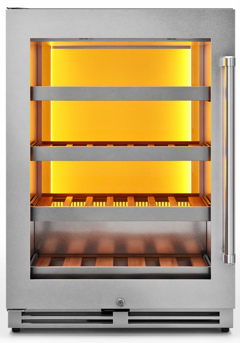 This beautifully designed 24-inch Single Zone Wine Cooler has a 45 wine bottle capacity can easily fit a full selection of wines. What is a perfectly cooked masterpiece without a perfectly preserved wine pairing? #cooklikeagod