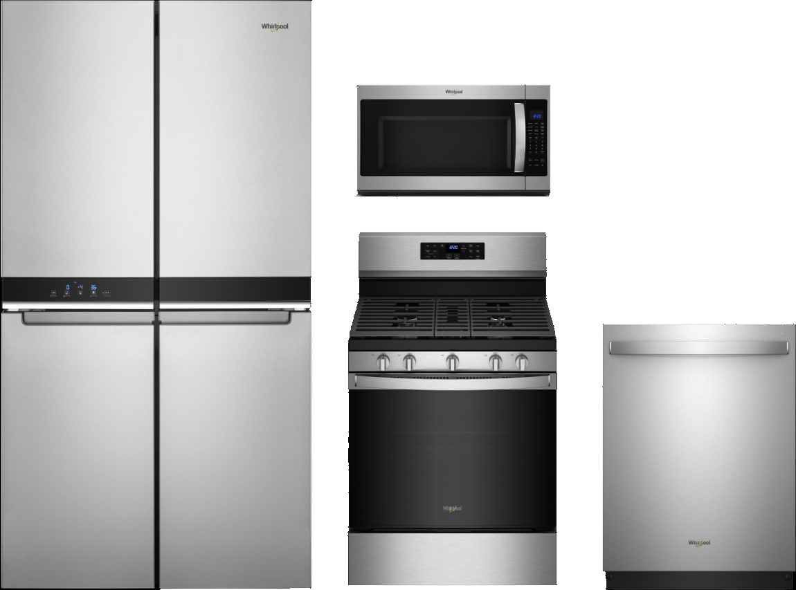 Package includes: Whirlpool® 19.4 Cu. Ft. Fingerprint Resistant Metallic Steel Counter Depth French Door Refrigerator; Whirlpool® 30" Fingerprint Resistant Stainless Steel Freestanding Gas Range with 5-in-1 Air Fry Oven; Whirlpool® 2.1 Cu. Ft. Fingerprint Resistant Stainless Steel Built In Microwave; Whirlpool® 24" Fingerprint Resistant Stainless Steel Built In Dishwasher, KitchenAid® Yummly® Graphite Smart Meat Thermometer.Read More